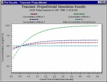 concentrations through time after the pipe from Mixer-2 to Mixer-1 is
