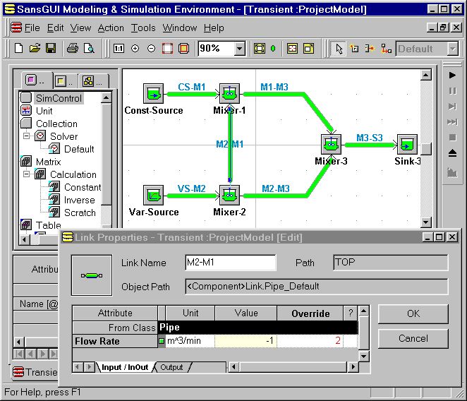 the pipe from Mixer-2 to Mixer-1 by setting the flow rate to 2 m3/min.