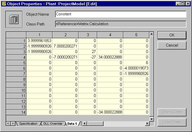 The constant matrix of the example with