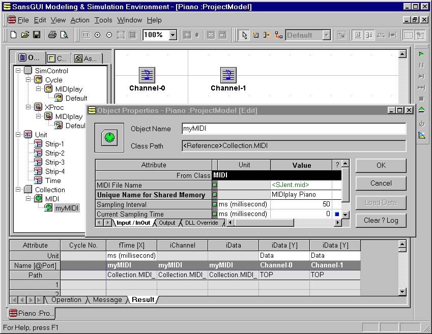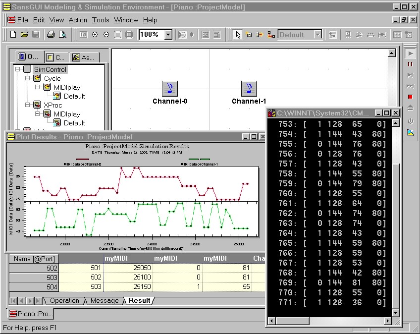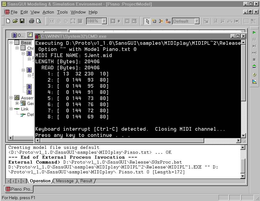 In this example, the external process simulator is a MIDI player that sends