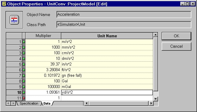 The unit conversion table in a unit object